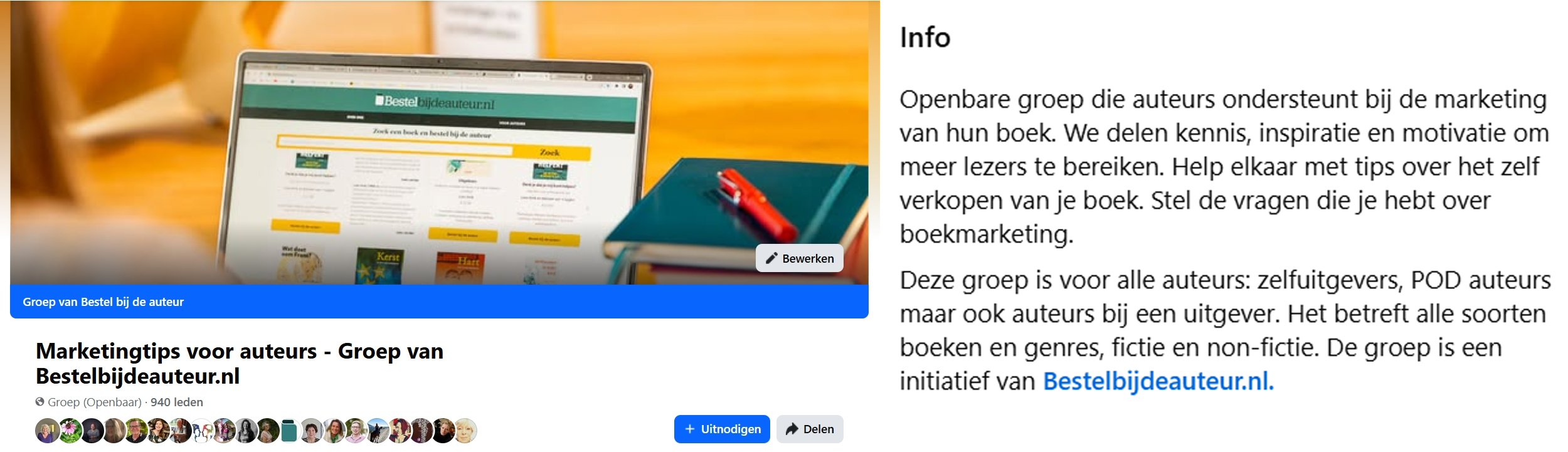 - Word lid van onze groepen op LinkedIn en Facebook (open voor alle auteurs)